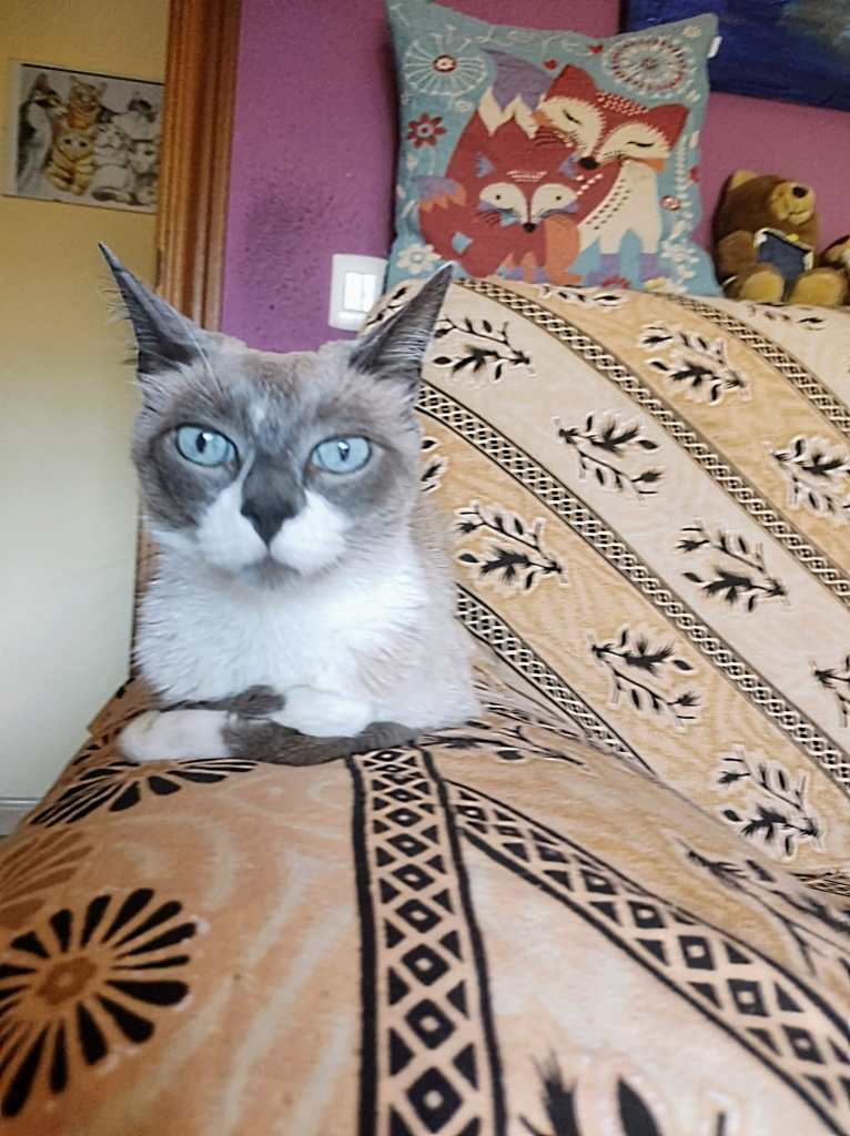 Esta segunda vez que volví de India y Nepal, caímos enfermas mi madre y yo, un catarro largo en el tiempo nos pilló a ambas. Jeyko se pasaba todo el día durmiendo con nosotras, no vimos nada anormal en ello, pero cuando ya nos recuperamos, él seguía durmiendo muchísimo y empezó a comer cada vez menos. Agua seguía bebiendo mucha, pero siempre lo había hecho desde que llegó, y esa fue una señal que no supimos ver desde un principio. Cuando ni su lata de comida húmeda favorita se la acababa, y empezó a fallarle las piernas al subir a la encimera, nos dimos cuenta que algo no iba bien con Jeyko. Ese mismo día lo llevamos al veterinario, le hicieron una analítica y para horror nuestro descubrimos, que los valores de sus riñones, presentaban un cuadro difícil, requerían hospitalización y sueroterapia. Lo llevamos a otro centro veterinario, porque donde le hicimos la analítica no era hospital, encontramos uno en el pueblo de al lado, y allí se quedó Jeyko un fin de semana. Nosotras fuimos a verlo por las mañanas, no nos dejaban más que media hora al día. Los resultados de la segunda analítica después del tratamiento no fueron nada alentadores, Jeyko de haber sido humano, estaría en diálisis y a la espera de trasplante de riñón. Así de mal pintaba la cosa, pero algo tenía claro el veterinario, Jeyko tenía ganas de seguir viviendo, o eso parecía.